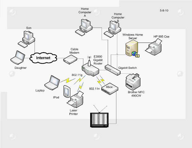 For the last two weeks, my most significant other has been bugging me (yes, I’m using that term) with the “I don’t know how this stuff is all put together. What am I suppose to do when you die and something breaks.” Ignoring the fact that I really don’t think I’ll care whether the laser printer is working when I die, I decided to show her how the stuff is put together. The stuff refers to my home computer network. So last night I diagramed it out, showed it to her and filed it in a book that I had her label so she knows what it is.